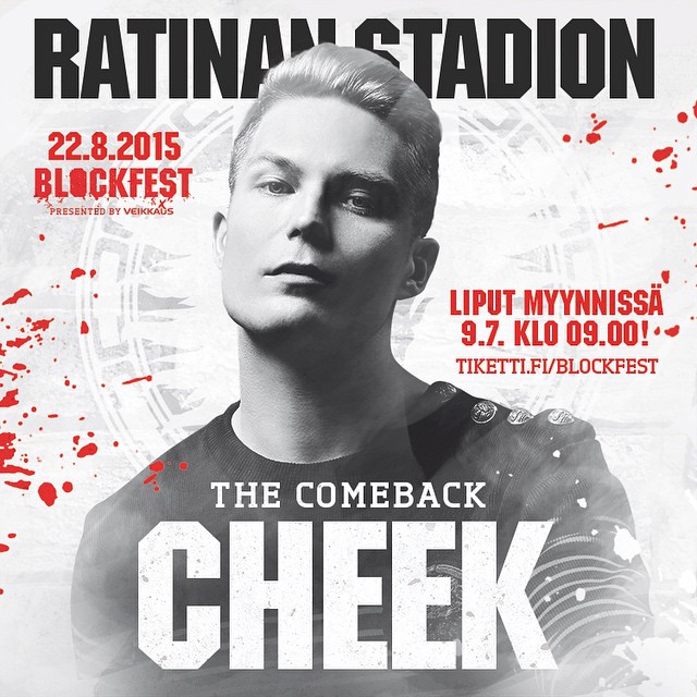 Nyt Cheek palaa lauteille, elokuun 22. päivä Tampereen Blockfest-tapahtumassa.