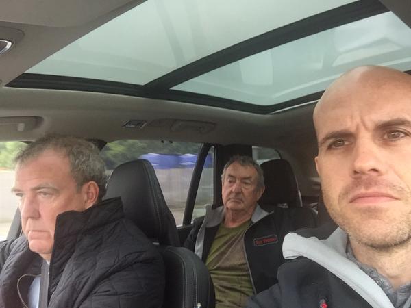 ”@jeremyclarkson showing @nickmasondrums & I the way around the Top Gear track. This is our Volvo faces”