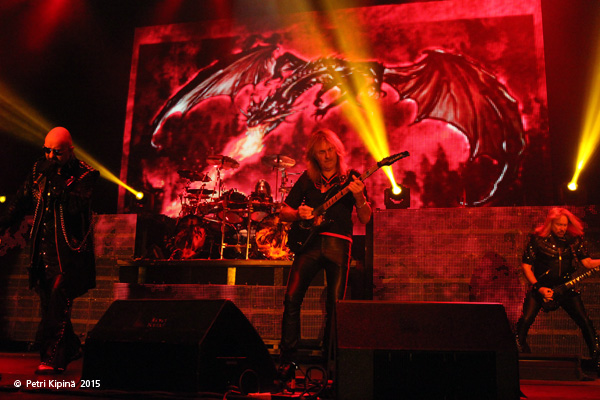 Metallimusiikin legenda Judas Priest ei näytä kaipaavan vielä eläkkeelle vaikka jäähyväiskiertueista on puhuttu jo pariinkin otteeseen. Eikä ole tarvettakaan. Metallijumala Rob Halfordin kipparoima yhtye oli nimittäin Helsingin jäähallissa sellaisessa iskussa jonka rinnalla moni nuorempi yhtye kalpenee välittömästi. Tämänkertainen kiertue on nimetty uuden Redeemer of souls -albumin mukaan. Kyseisestä levystä ei ole kuin hyvää sanottavaa sillä se on herkkua kaikille metallimusiikin ystäville.