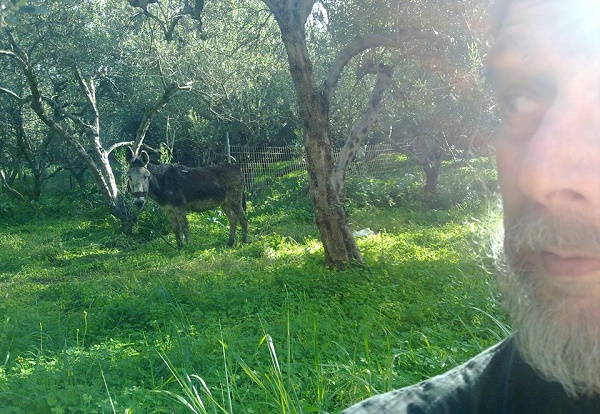 Koira haukahti leipomon takana. Kukko kiekui jossain appelsiinipuiden siimeksessä. Ja oliivipuiden lomasta minua tuijotti takkuinen aasi.