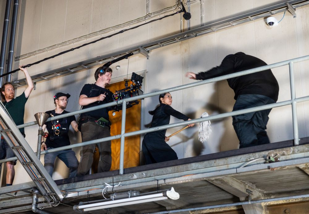 Jussi Vatasella oli viimeisinä kuvauspäivinä ohjelmassaan stunt-kohtausten tekoa kotkalaisessa tehtaassa.