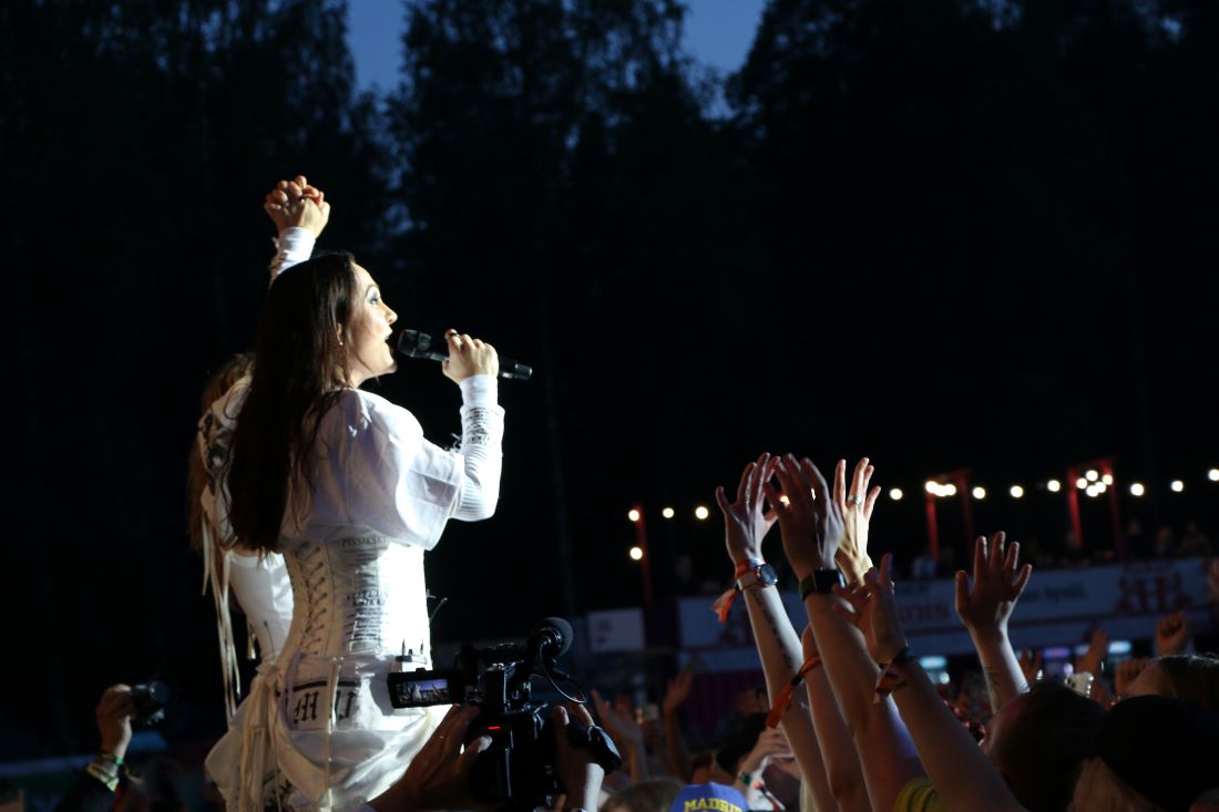 PMMPn paluu oli vakuuttava, eikä yhtyeessä näkynyt tauon jäljiltä epävarmuutta tai kohmeutta. Akrobaattisella Mira Luodilla tuntui olevan raspia äänessä tavanomaista enemmän ja yleisöä puhutellessaan hän saattoi karjua metallimaailman antaumuksella. Liekö tämä vaikuttanut siihen, että ääni ei pysynyt koko konserttia aivan kasassa. Se oli ihanaa! Paula ja Mira, mitä ikinä jatkossa teettekään, toivottavasti annatte särmien näkyä. Tämä oli se resepti, mikä sai Provinssissa yleisön viihtymään, kädet nousemaan ilmaan ja ääntä lähtemään. Symbioosi toimi – eikä tarvinnut edes erikseen kysellä.
