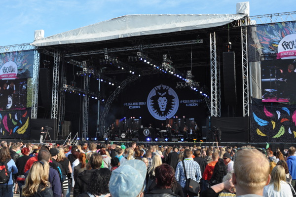 Haloo Helsinki! esitti Saarilavalla todellisen hittiputken. Suuren maailman tyyliin pyroshown avittamana alkanut keikka sujui pirteästi ja hymyssä suin. Haloo Helsinki! on saavuttanut asemansa, bändin ei tarvitse todistella osaamistaan. Tietynlainen vapautuneisuus säteili bändin tyypeistä ja keulahahmo Elli on nousemassa kotimaisten naisartistien ykköskaartiin. Haloo Helsinki! veti Saarilavan edustajan täysin tukkoon imaisten hetkeä ennen esiintyneen Cheekin fanit omikseen. Kansankaraoke oli voimissaan.