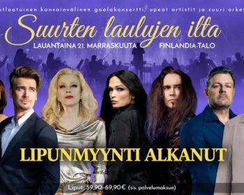 Tarja Turunen esiintyy Helsingin Finlandia-talon suuressa gaalakonsertissa marraskuussa. Turunen ja Jarkko Ahola loistavat suuren gaalakonsertin tähtinä Finlandia-talossa Suurten laulujen ilta -nimisessä