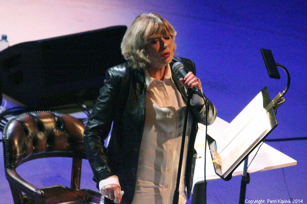 Sunnuntai-iltana Helsingin Musiikkitalolla esiintyi yksi rockmusiikin elävistä legendoista. Englantilainen Marianne Faithfull saapui Suomeen kolmannen kerran kymmenen vuoden sisällä. Ympäri maailmaa 50 -vuotisjuhlakiertueen merkeissä kiertävä artisti houkutteli paikalle mukavasti yleisöä joka selvästi piti näkemästään. Aplodeissa ei nimittäin säästelty kappaleiden ja välispiikkien jälkeen. Lonkkaleikkauksesta pikku hiljaa toipuva tähti oli Musiikkitalon lavalla samaan aikaan sekä hauras, vahva, vakava että hauska. Konsertin settilista nojasi varsin vahvasti uusimman studioalbumin materiaaliin. Marianne Faithfull ei halua ammentaa pelkästään menneisyydestä vaan on vahvasti kiinni nykyhetkessä.